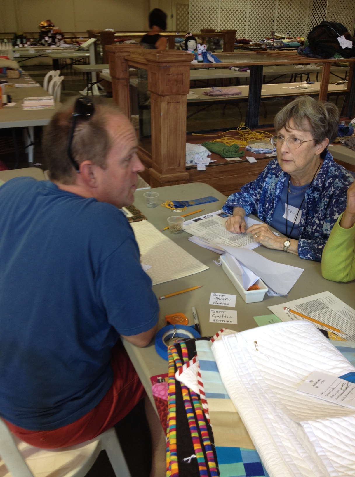 There is so much going on right now I really don’t know where to start. This last Sunday was the final day to turn in entries for the Fair. So I gathered up a couple of tote bags of my latest projects and took them down to the fairgrounds. The category guide has always confused me, there’s always more than one category that your quilt would be appropriate for and I’m never sure which one applies to the particular quilt. The awesome ladies working the intake table were so much help. Over an hour and a half later all 10 pieces had been entered. The Fair runs July 30 through August 10, 2014. Not too sure which day I will be able to go but I’m a little anxious to see how my quilts were judged.