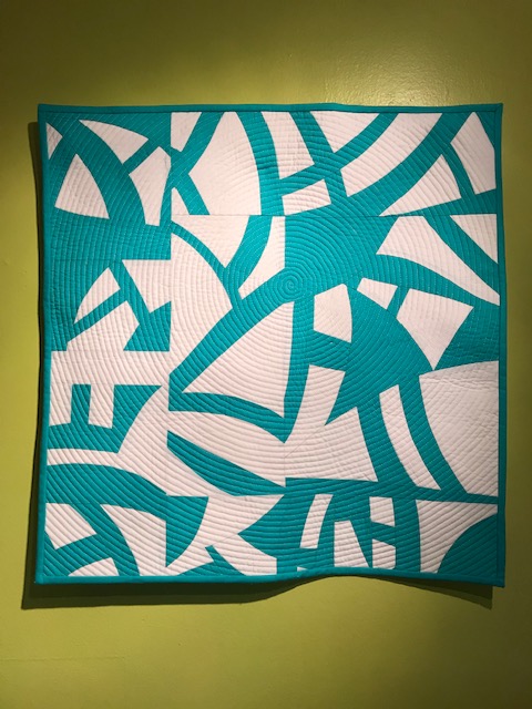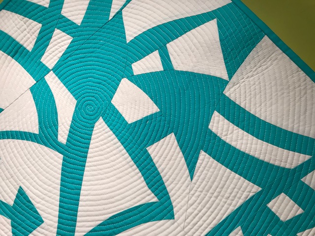 I was excited to see the Kaufman Kona color of the year, Splash. The colors in past years hasn’t done much for me…but, I have to admit that ‘Highlight’ kind of grew on me. A couple of shops are hosting a small quilt challenge for their upcoming shop hop. The objective was to use Pantone’s color of the year, Living Coral, or Kaufman Kona Splash to make a 24 inch quilt. Sounded like fun…so, here’s my tribute to Splash.