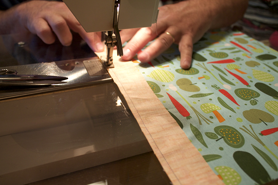 Cut 19 1/2″ X 14 1/2″ backing fabric and batting. Layer and pin in preparation for quilting…don’t pin pocket down so the whole placemat can be quilted (image 3). Quilt as desired.